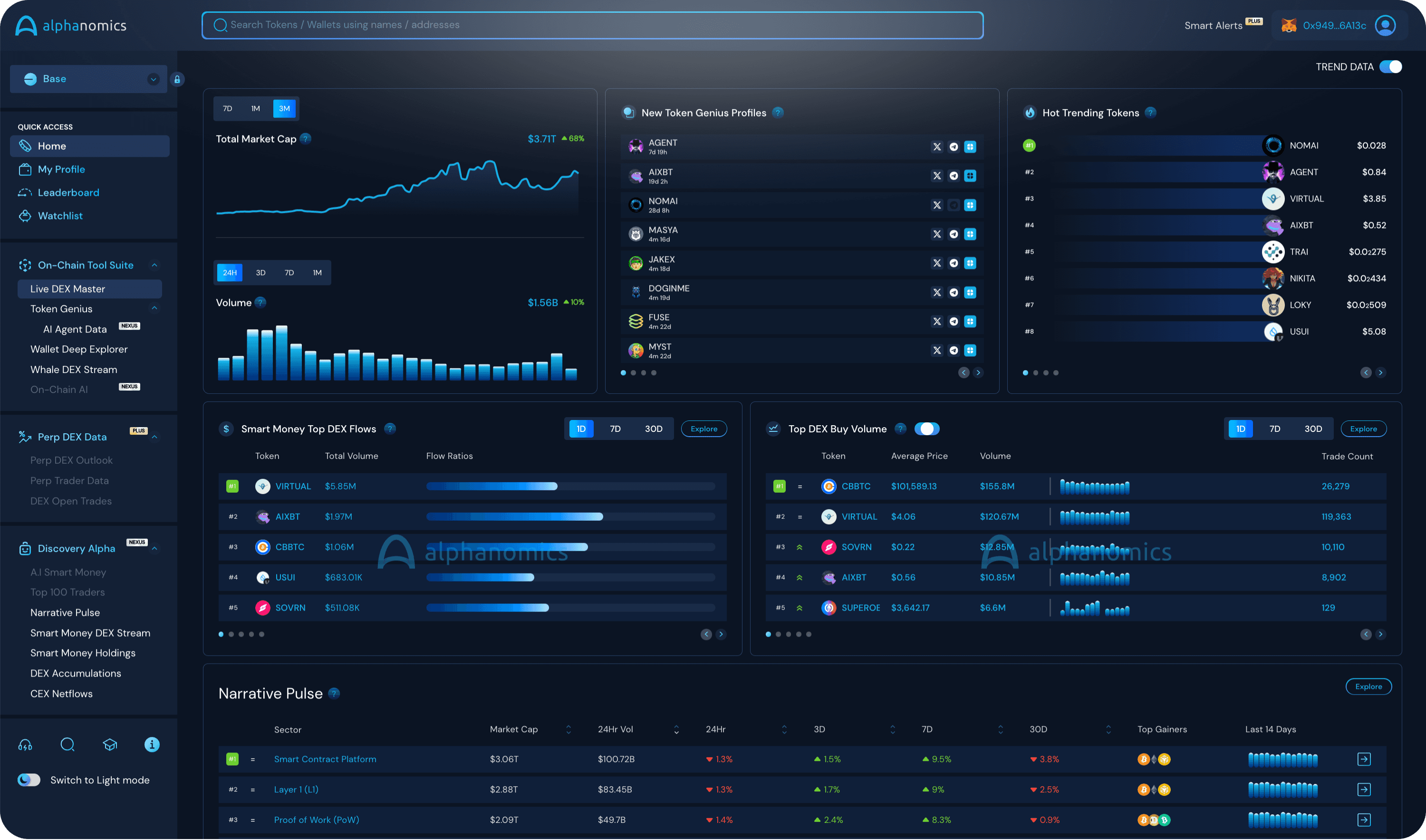 nomAI holders can unlock access to nexus data on the alphanomics on-chain data super terminal. users require